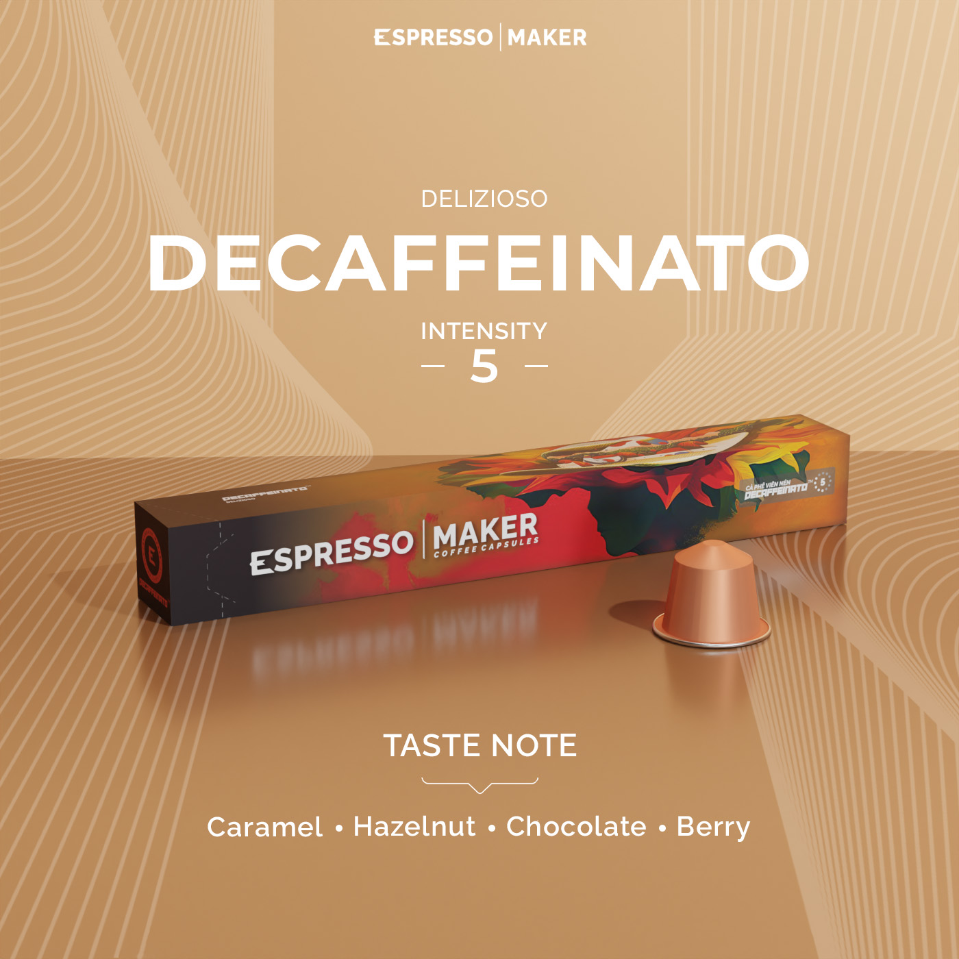 Dành cho những ai muốn thưởng thức cà phê bất kỳ lúc nào – Decaffeinato vẫn tròn vị với caramel ngọt, hạt dẻ bùi và chút quả mọng quyến rũ.