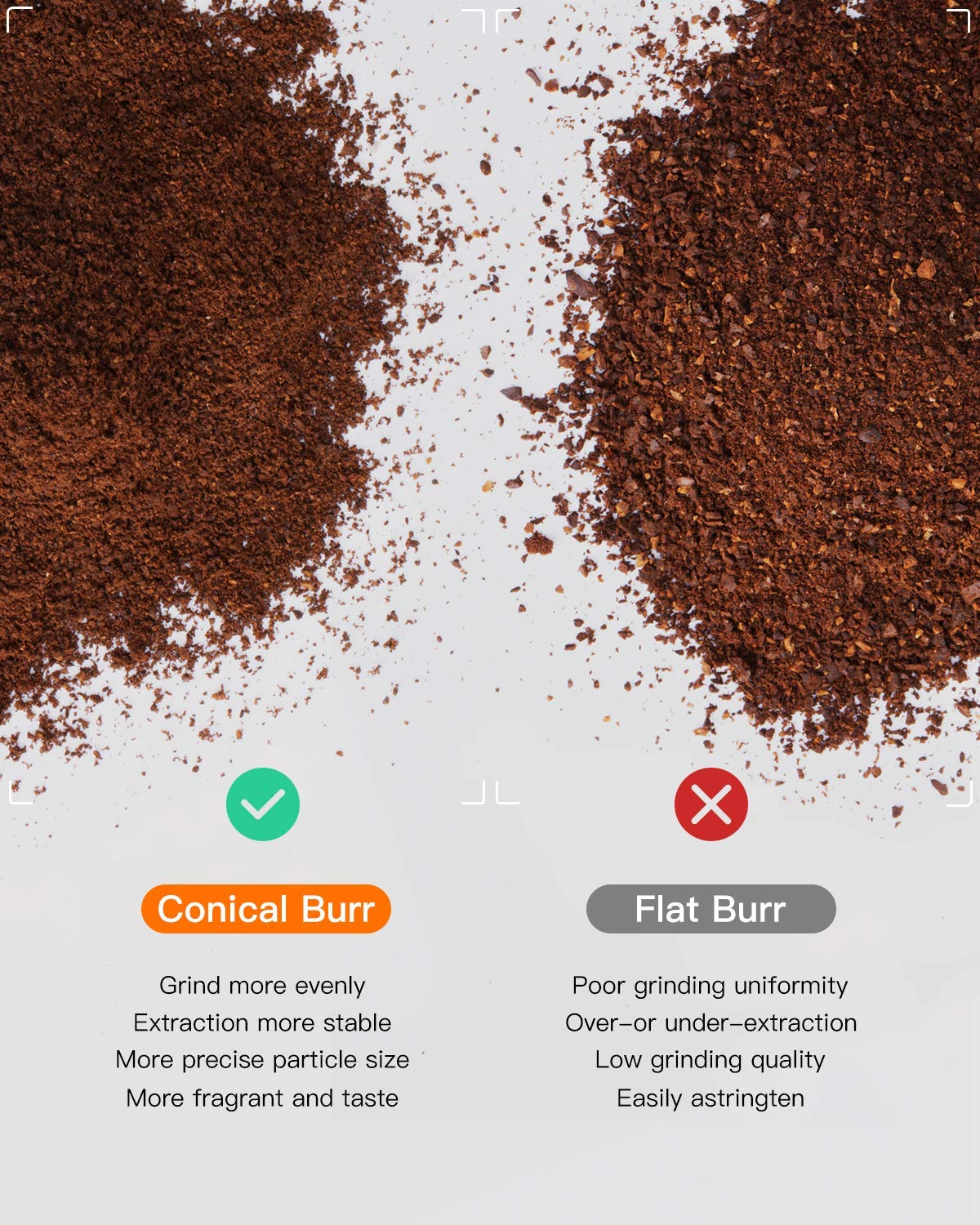 Cối xay không đủ tốt sẽ có trục giữa kém, qua đó làm tăng độ li tâm của mỗi vòng xoay, do đó dẫn đến chất lượng hạt xay ra không đồng đều. Ngoài ra lưỡi xay với chất lượng kém cũng là một yếu tố.