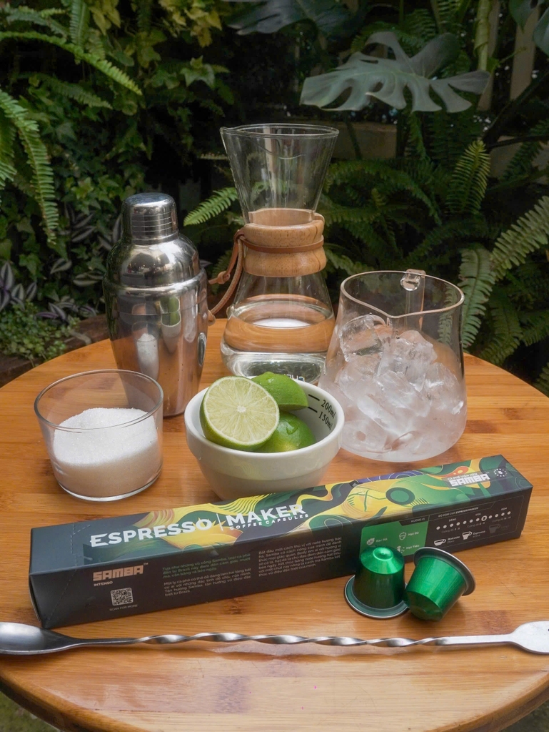 - 2 viên nén cà phê Espressomaker Samba, với hương vị tươi sáng, phức hợp sẽ là một lựa chọn tối ưu cho món Lime Espresso.