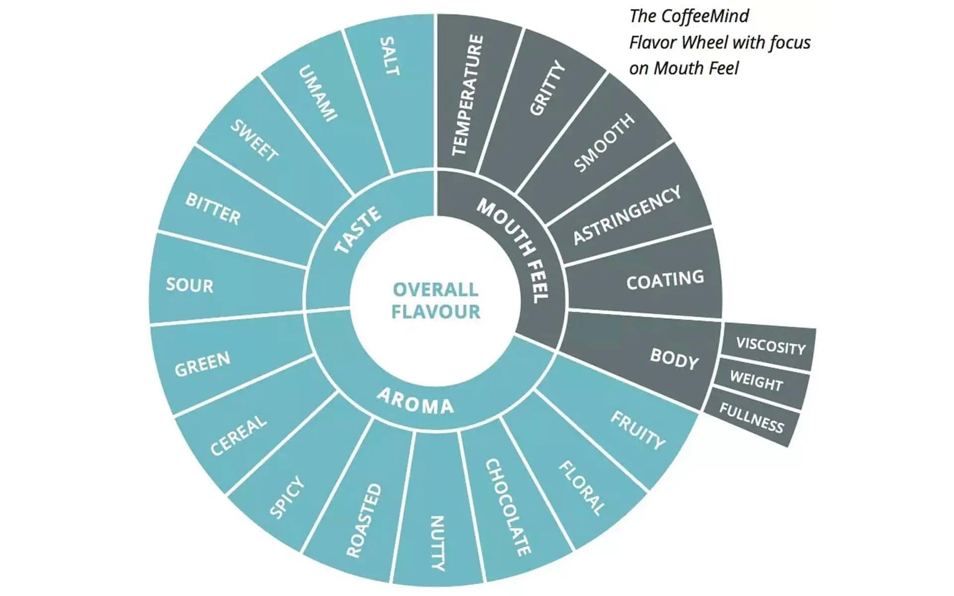 Bên cạnh hương và vị, cảm giác miệng cũng là một trong những yếu tố chúng ta tận hưởng từ cà phê, chữ "sánh" được sử dụng rất thường xuyên mà chúng ta hay nói về một ly cà phê là một ví dụ. Bên cạnh đó nó thể là êm, mượt mà, nhẹ nhàng, đầm đầm,... đều mang ý nghĩa tích cực về một ly cà phê.