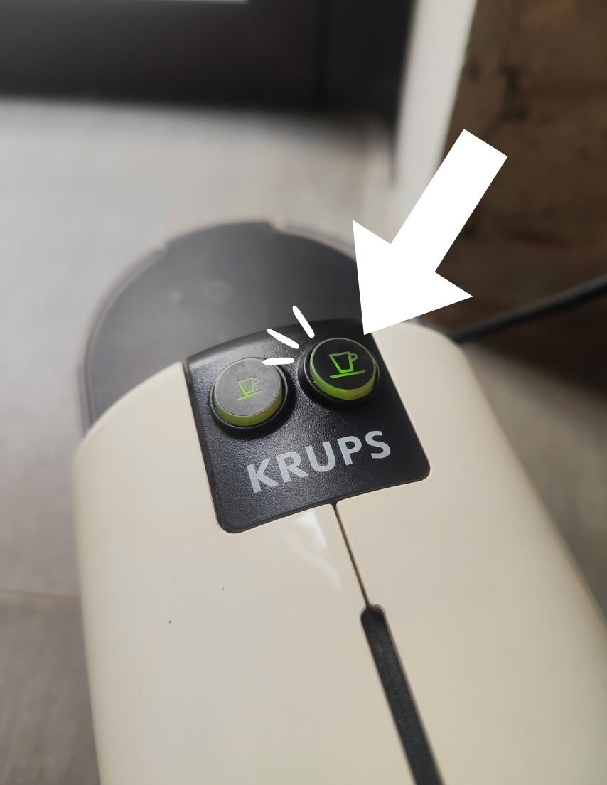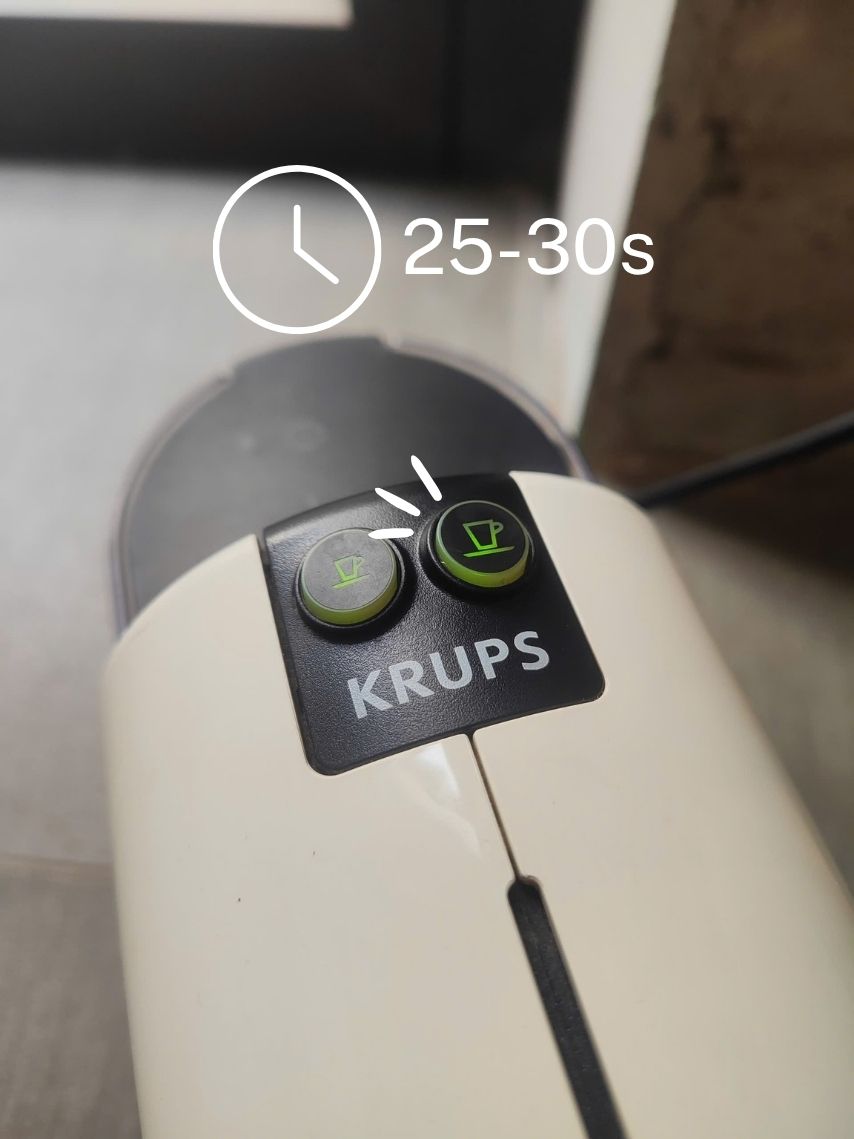 - Nhấn 1 trong 2 nút espresso hoặc lungo để bật nguồn. Chờ khoảng 25-30 giây để máy làm nóng, khi đèn thôi nhấp nháy là máy đã sẵn sàng.