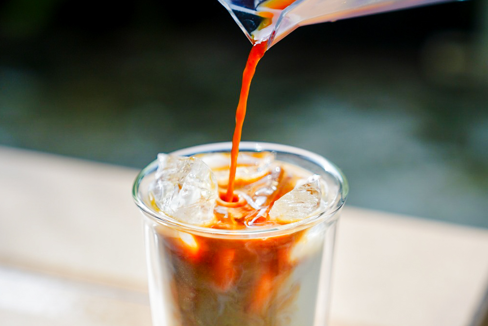 Thêm sữa và nhẹ nhàng rót lượng cà phê còn lại lên trên để hoàn thành.